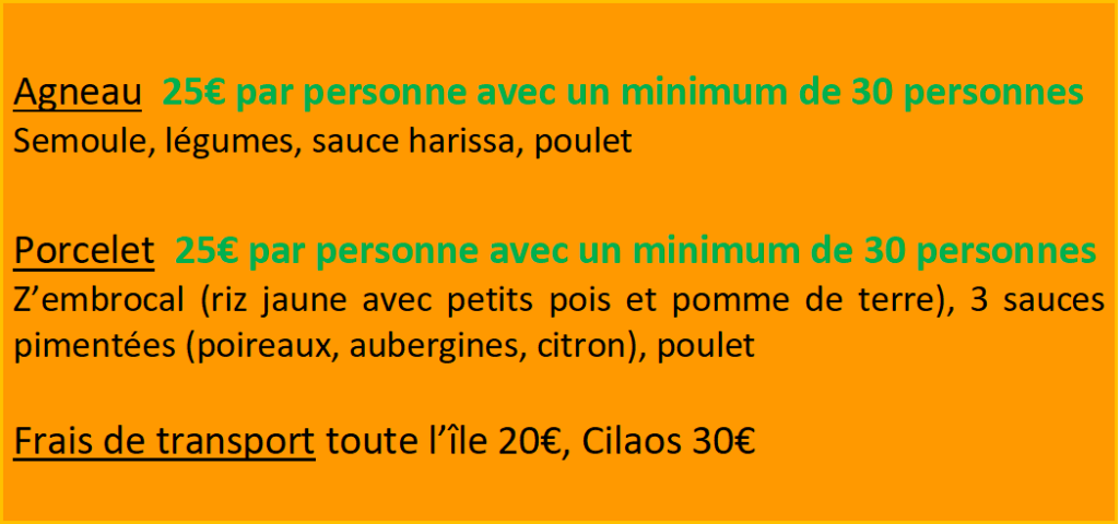 – la mise à disposition de vaisselle (assiette en verre, fourchette et couteau) pour 1€ par personne.